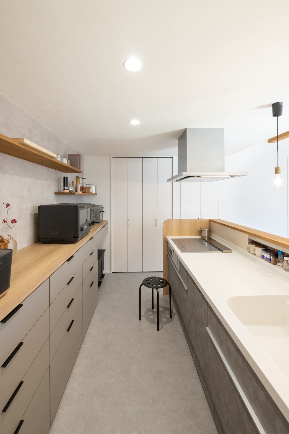 「モルタル(グレー)」と「木目」基調とした落ち着いた「ホテルライク」のデザインが、